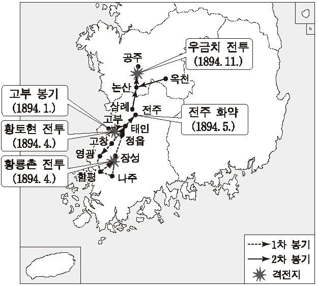 - 2018학년도(2017) 수능 한국사 홀수형 12번 기출문제 – 전주 화약, 우금치 전투