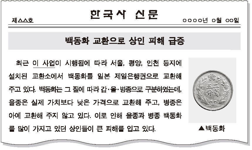 - 2018학년도(2017) 6월 모의평가 한국사 13번 기출문제 – 화폐 정리 사업