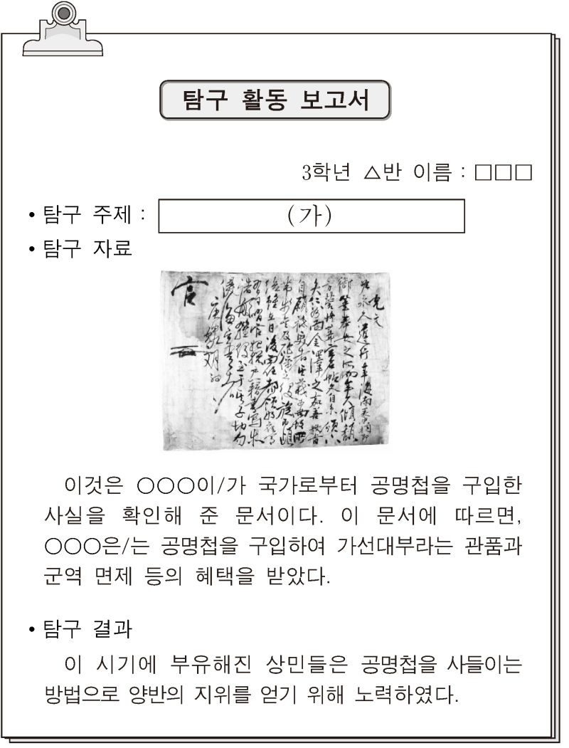 - 2018학년도(2017) 9월 모의평가 한국사 10번 기출문제 – 조선 후기 공명첩