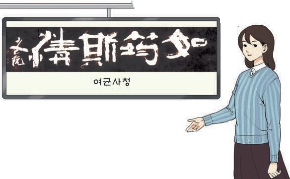 교사: “이것은 조선 후기에 추사체를 창안한 인물의 글씨입니다. 그는 제주도 유배 생활 중 세한도를 그린 것으로도 유명합니다.” |