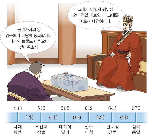 7. 다음 대화가 있었던 시기를 연표에서 옳게 고른 것은? [3점]