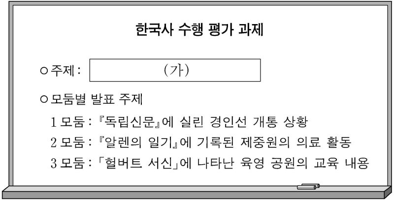- 2019학년도(2018) 6월 모의평가 한국사 13번 기출문제 – 경인선, 제중원, 육영 공원