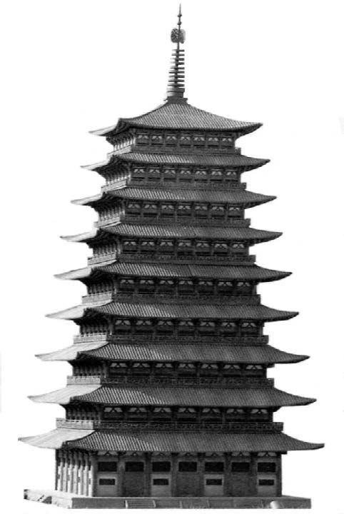 사진은 (가)의 선덕 여왕 때 자장의 건의로 황룡사에 세운 탑의 모습을 추정하여 만든 모형이다. 장차 주변의 아홉 나라로부터 조공을 받고, 나라가 평안하기를 기원하여 9층으로 만들었다고 한다. |