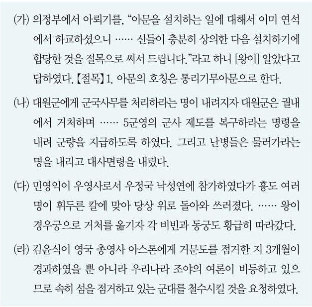 2019 제43회 한국사능력검정시험(한능검) 고급 34번 기출문제 – 개화 정책 추진, 임오군란, 갑신정변, 거문도 사건
