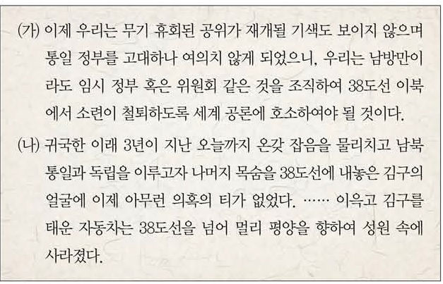 - 2019 제43회 한국사능력검정시험(한능검) 고급 46번 기출문제 – 이승만 정읍 발언, 김구 남북 협상