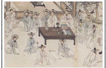 선생님: 이 그림은 중인들이 시 모임인 시사(詩社)를 개최하는 장면을 그린 유숙의 작품입니다. 이 그림이 그려진 시기의 문화에 대해 말해 볼까요? |