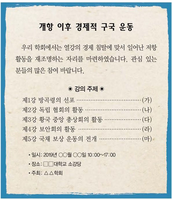 2019 제43회 한국사능력검정시험(한능검) 중급 34번 기출문제 – 개항 이후 경제 구국 운동