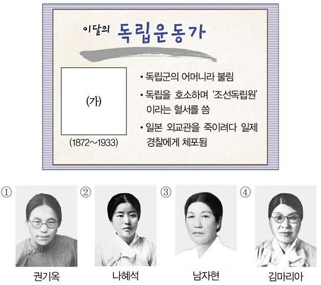 - 2019 제43회 한국사능력검정시험(한능검) 초급 33번 기출문제 – 여성 독립운동가