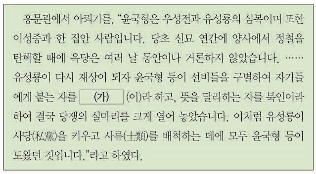 28. (가) 붕당에 대한 설명으로 옳은 것은? [3점]
