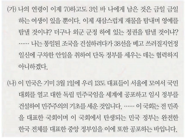 - 2019 제44회 한국사능력검정시험(한능검) 고급 44번 기출문제 – 김구 남북협상, 대한민국 정부 수립