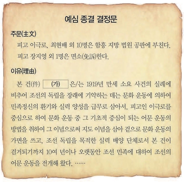 - 2019 제44회 한국사능력검정시험(한능검) 고급 45번 기출문제 – 조선어 학회 사건