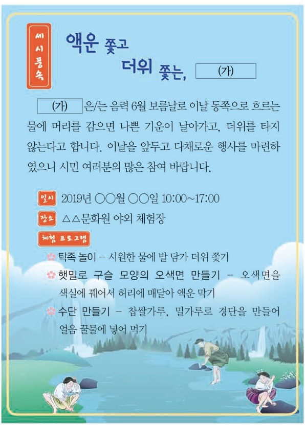 - 2019 제45회 한국사능력검정시험(한능검) 고급 30번 기출문제 – 세시 풍속