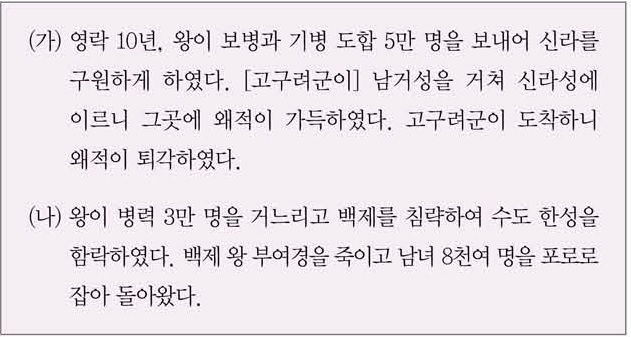 - 2019 제45회 한국사능력검정시험(한능검) 중급 7번 기출문제 – 광개토 대왕, 장수왕