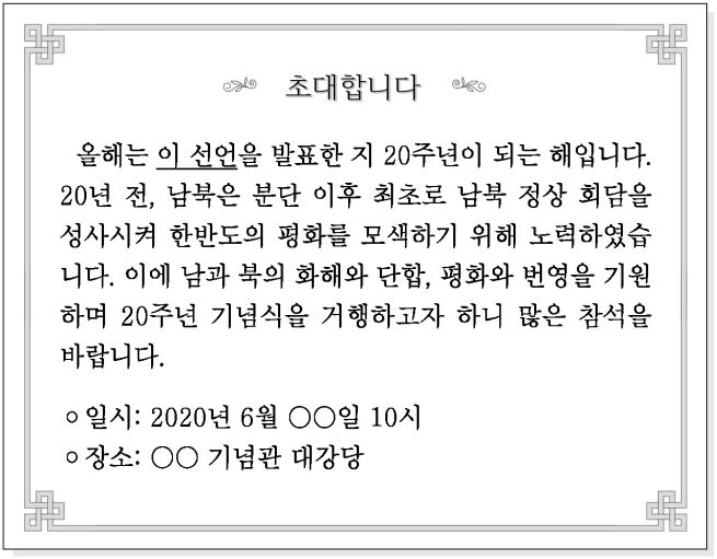 - 2020학년도 4월 고3 학평 한국사 20번 기출문제 – 6·15 남북 공동 선언