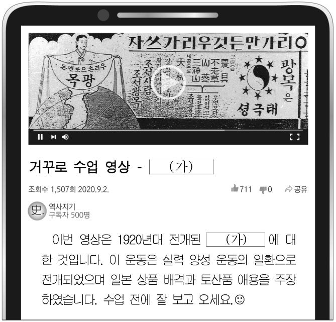 - 2020학년도 9월 고1 학평 한국사 19번 기출문제 – 물산 장려 운동