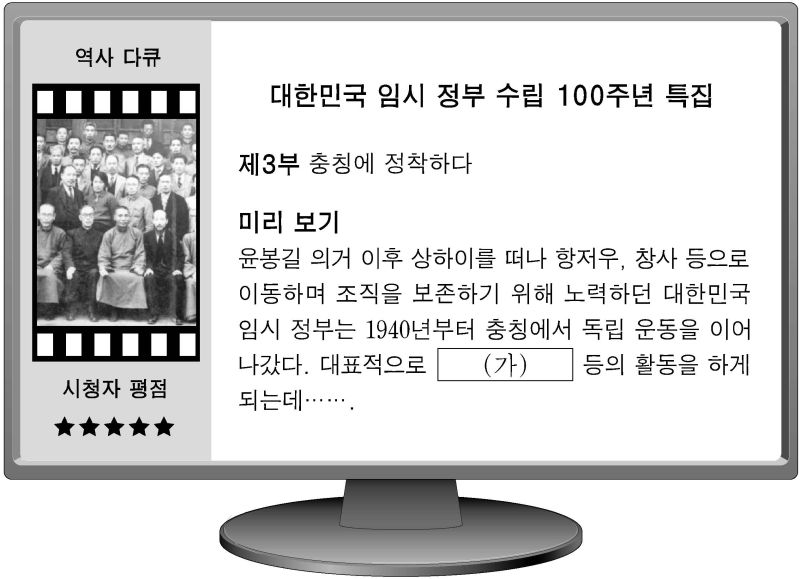 2020학년도(2019) 9월 모의평가 한국사 19번 기출문제 – 대한민국 임시 정부