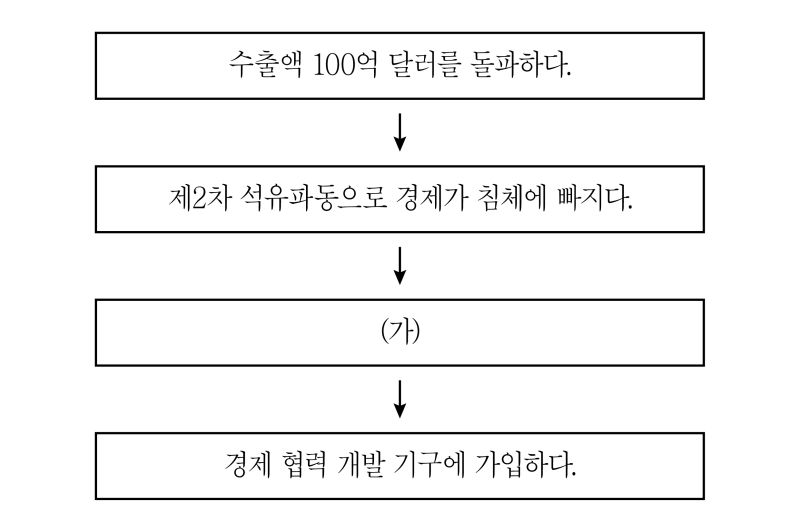 문 17. 다음은 우리나라 경제성장 과정을 시간순으로 나열한 것이다. (가)에 들어갈 내용으로 옳은 것은?