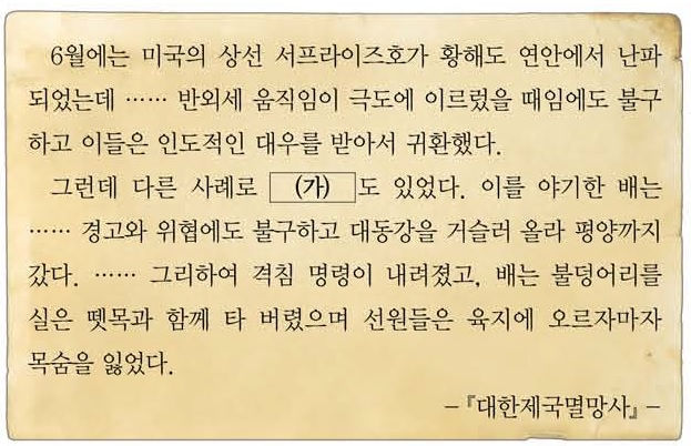 - 2020 제46회 한국사능력검정시험(한능검) 중급 33번 기출문제 – 제너럴 셔먼호 사건