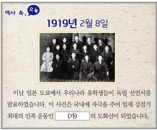 - 2020 제46회 한국사능력검정시험(한능검) 초급 32번 기출문제 – 2⋅8 독립 선언