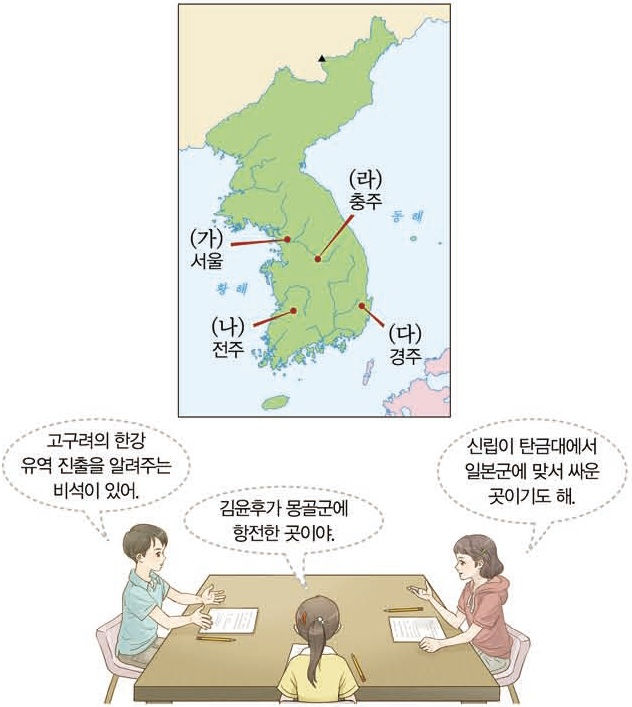42. 학생들이 공통으로 이야기하고 있는 지역을 지도에서 옳게 찾은 것은? [2점]