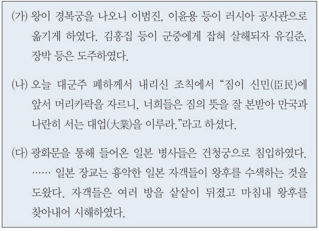 - 2020 제47회 한국사능력검정시험(한능검) 심화 35번 기출문제 – 아관파천 단발령 을미사변