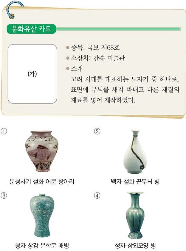 - 2020 제48회 한국사능력검정시험(한능검) 기본 12번 기출문제 – 고려 상감 기법