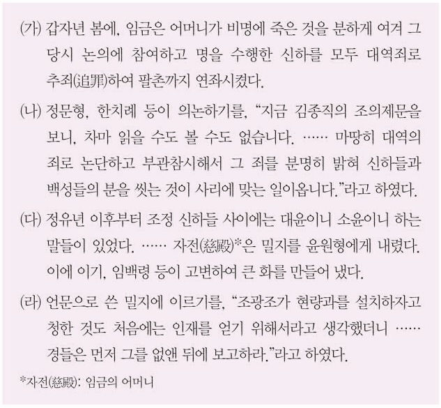 21. (가)~(라) 사건을 일어난 순서대로 옳게 나열한 것은? [3점]