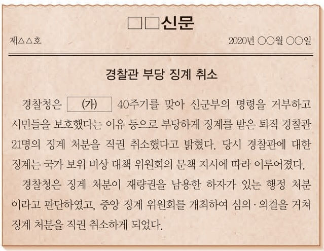 - 2020 제48회 한국사능력검정시험(한능검) 심화 49번 기출문제 – 5.18 민주화 운동