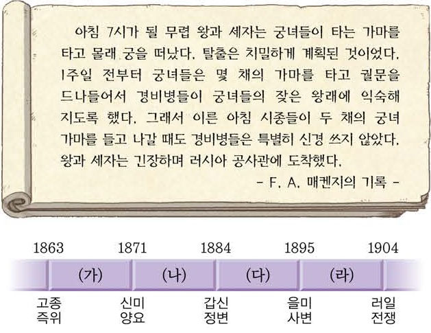 - 2020 제49회 한국사능력검정시험(한능검) 기본 29번 기출문제 – 아관파천