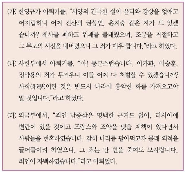 - 2020 제50회 한국사능력검정시험(한능검) 심화 22번 기출문제 – 신해박해, 신유박해, 병인박해
