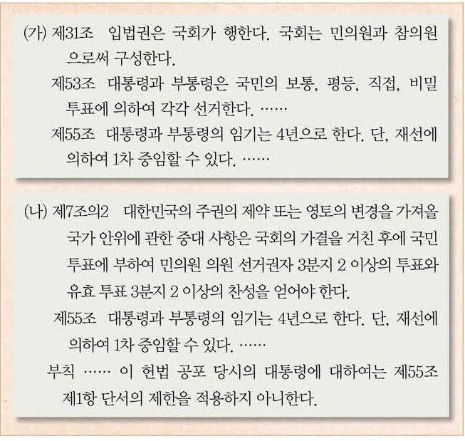 46. (가), (나) 헌법에 대한 설명으로 옳은 것은? [3점]
