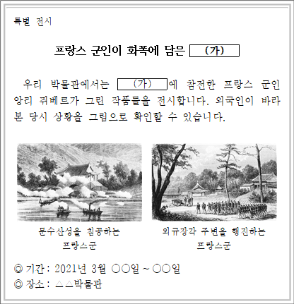 - 2021학년도 3월 고2 학평 한국사 15번 기출문제 – 병인양요
