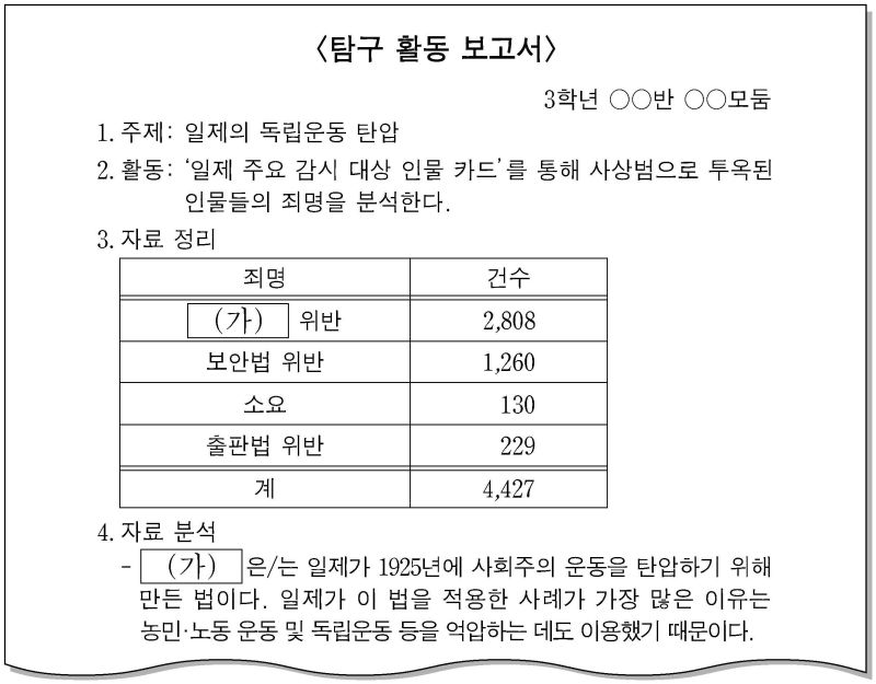 - 2021학년도(2020) 9월 모의평가 한국사 15번 기출문제 – 일제 치안 유지법