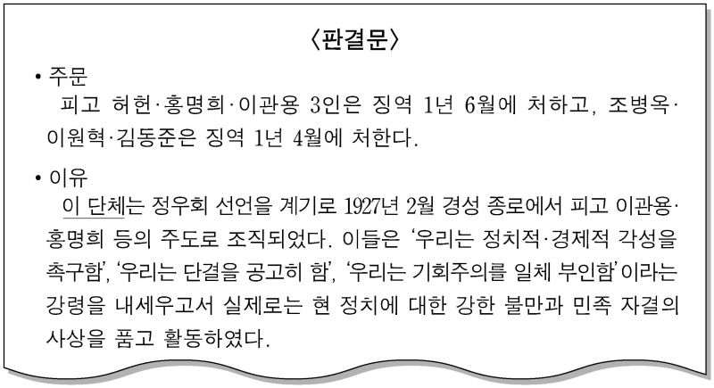 - 2021학년도(2020) 9월 모의평가 한국사 16번 기출문제 – 신간회