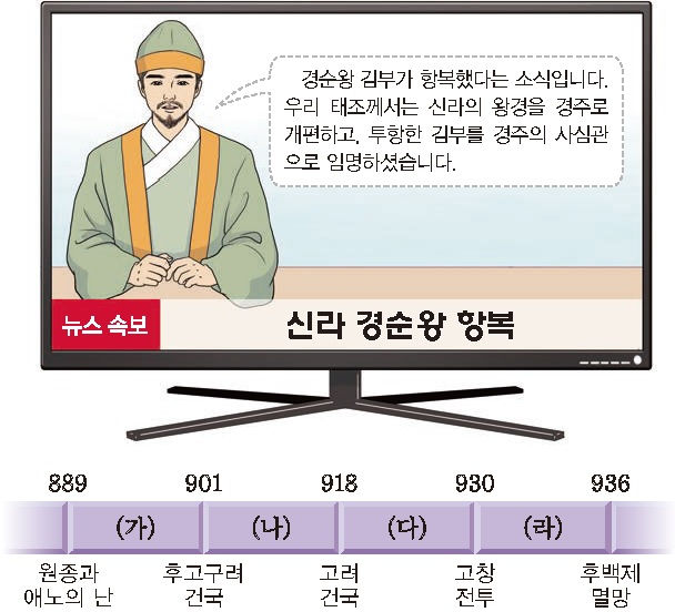 11. 다음 가상 뉴스에서 보도하고 있는 사건이 일어난 시기를 연표에서 옳게 고른 것은? [3점]