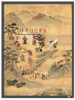 선생님: 이 그림은 윤관이 (가)을/를 정벌하고 동북 9성을 설치한 후 고려의 경계를 알리는 비석을 세우는 장면을 그린 척경입비도입니다.