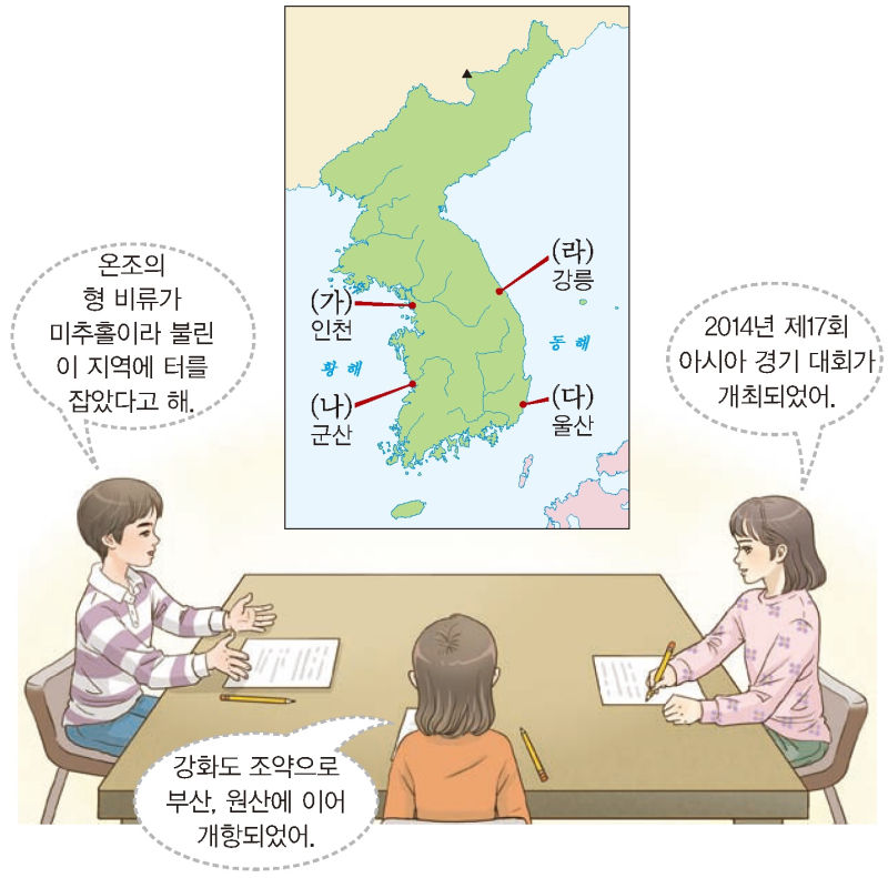 19. 학생들이 공통으로 이야기하고 있는 지역을 지도에서 옳게 찾은 것은? [2점]