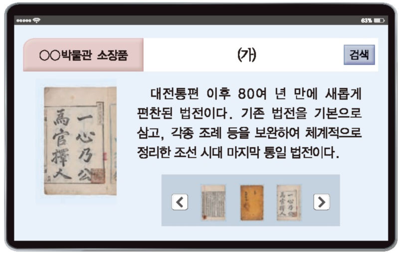 29. (가) 법전이 편찬된 시기에 볼 수 있는 모습으로 가장 적절한 것은? [3점]