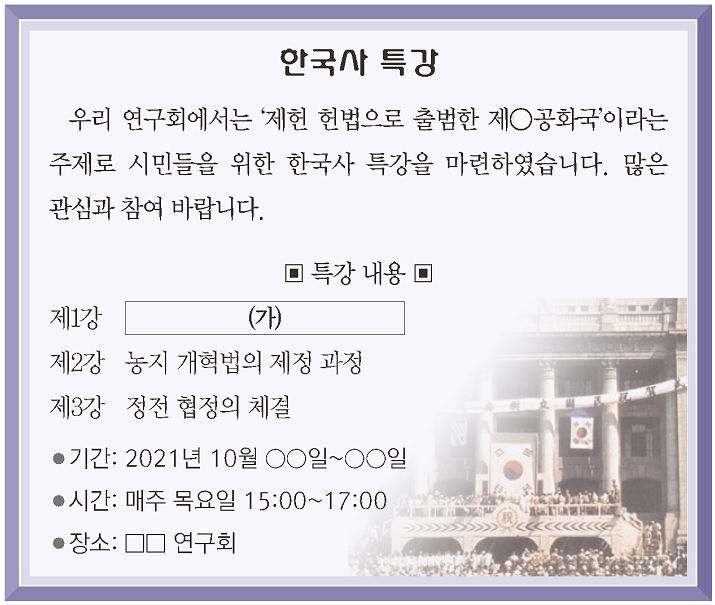 - 2021 제56회 한국사능력검정시험(한능검) 심화 47번 기출문제 – 이승만 정부