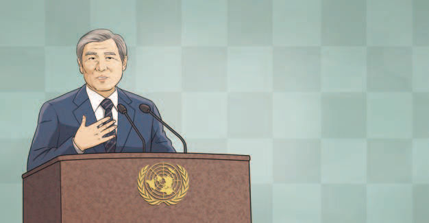 “나는 3년 전 이 자리에서 서울 올림픽의 감명을 전했습니다. …… 며칠 전 남북한이 다른 의석으로 유엔에 가입한 것은 가슴 아픈 일이지만 통일을 위해 거쳐야 할 중간 단계입니다. 남북한의 두 의석이 하나로 되는 데는 오랜 시간이 걸리지 않을 것으로 믿습니다.” |
