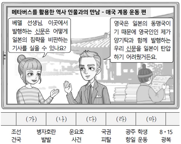 14. 밑줄 친 ‘신문’이 발행된 시기를 연표에서 옳게 고른 것은? [3점]