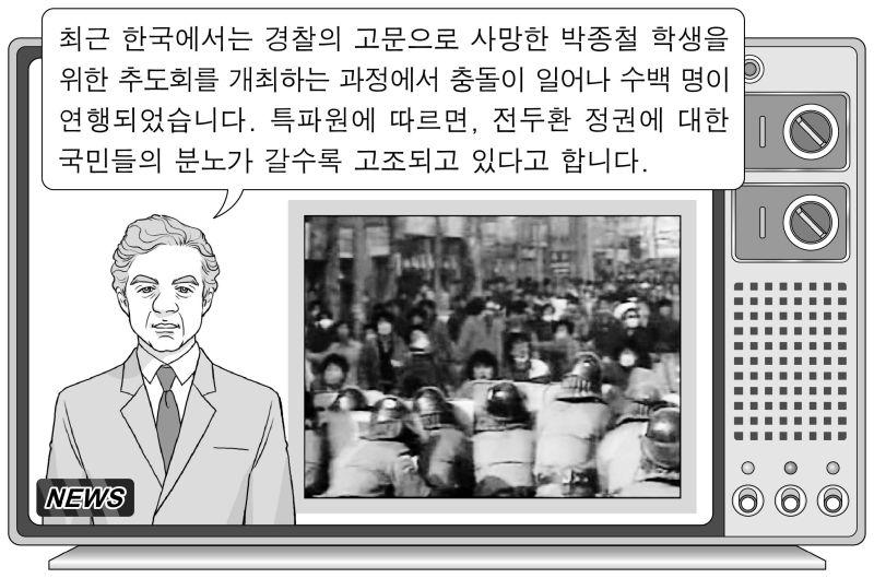 ① 6월 민주 항쟁의 배경을 조사한다.