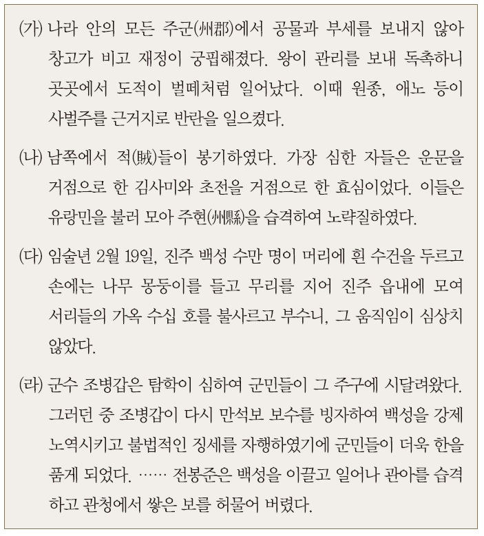 2022 제59회 한국사능력검정시험(한능검) 심화 29번 기출문제 – 역사의 민중 항쟁