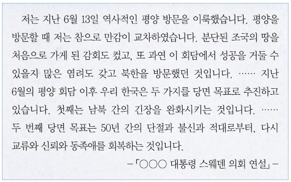50. 다음 연설이 있었던 정부의 통일 노력으로 옳은 것은? [2점]