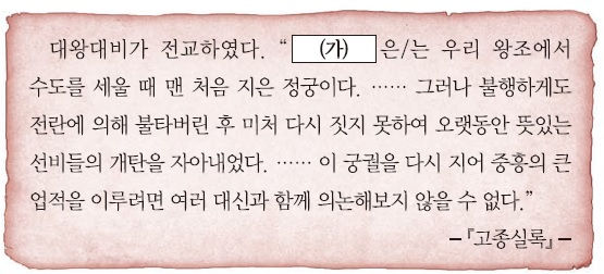 19. (가) 궁궐에 대한 설명으로 옳은 것은? [2점]