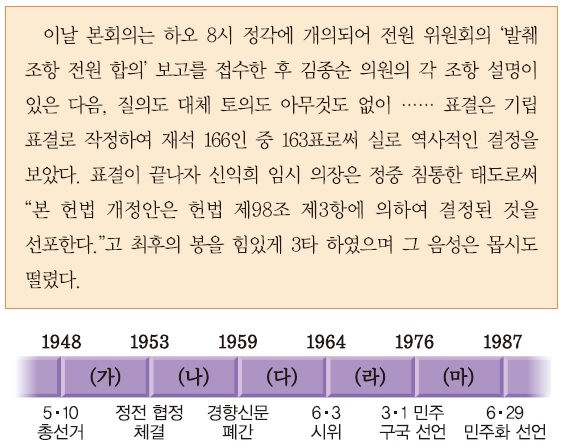 2022 제60회 한국사능력검정시험(한능검) 심화 42번 기출문제 – 발췌 개헌