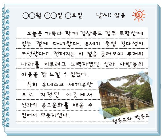 8. 다음 일기의 소재가 된 절에서 볼 수 있는 문화유산으로 옳은 것은? [1점]