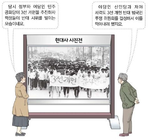⑤ 국회 해산, 헌법의 일부 효력 정지를 담은 10월 유신이 선포되었다.