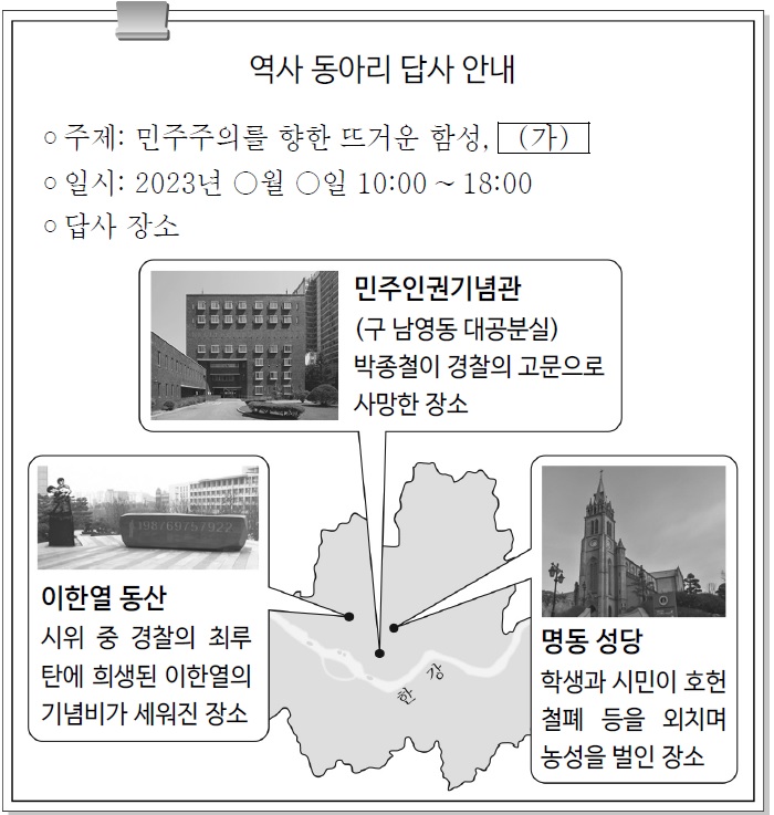 - 2023학년도 4월 고3 학평 한국사 20번 기출문제 – 6월 민주 항쟁