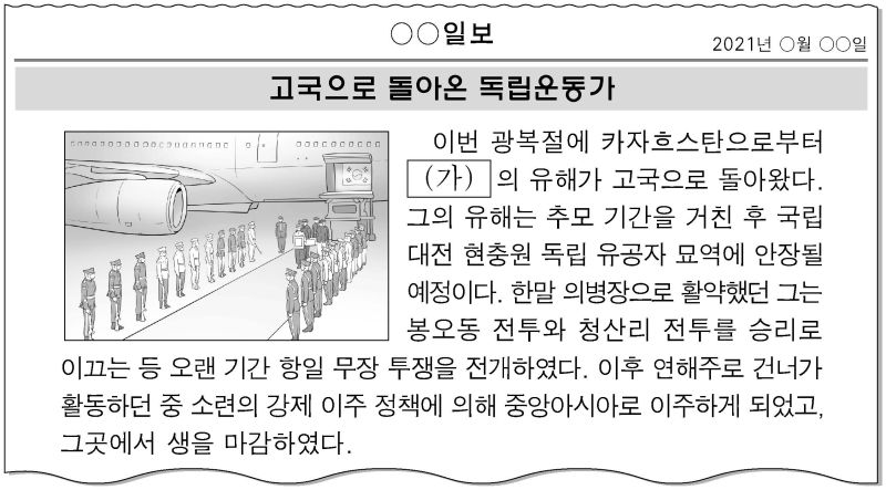 - 2023학년도(2022) 6월 모의평가 한국사 13번 기출문제 – 홍범도